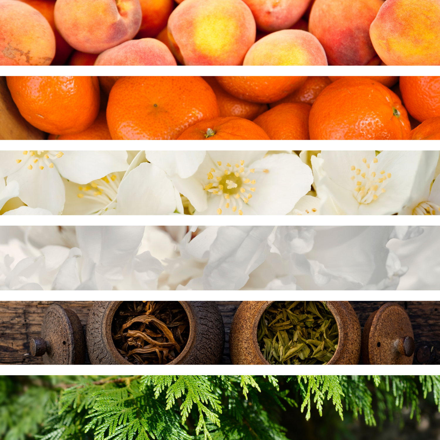 La fragrance Pêche Blanche invite à une sensation estivale de fraîcheur. En fermant les yeux, laissez-vous emporter par le parfum sucré de la pêche, mêlant subtilement les feuilles de pêcher, l'abricot et la mandarine.